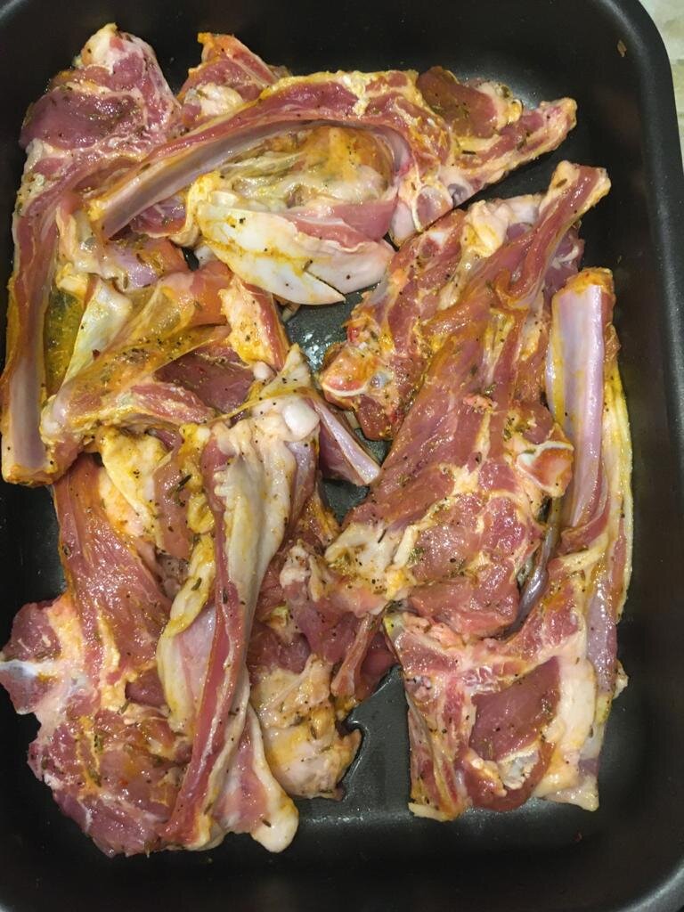 Пару раз пробовала заказывать блюда из баранины в кафе-ресторанах, и ни разу не смогла съесть больше пары кусочков (все- таки баранина- для истинных ценителей). Эти ребрышки, которые сготовили сами, я ела с удовольствием ( и удивлением 🙂). Итак, делюсь рецептом. 1) Предварительный этап: промываем мясо, натираем солью, перцем и кумином ( также эта приправа именуется «зира»). 2) Маринуем полчаса. 3) Берём свежий репчатый лук и нарезаем крупными кусочками.