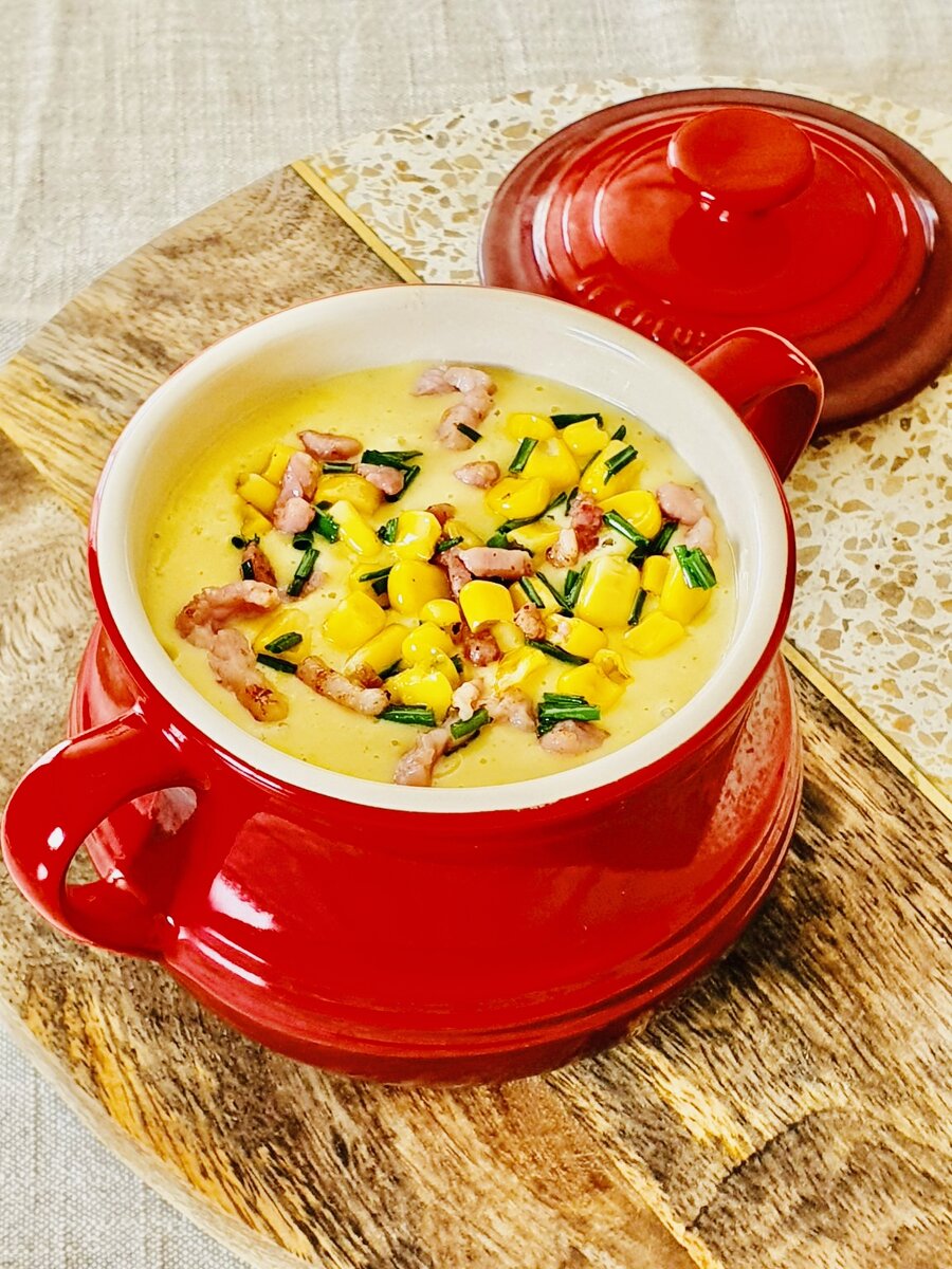 Сегодня немного американской кухни Отличный рецепт для быстрого и простого приготовления в выходной день! Ингредиенты: Порядок приготовления: Лук очистите и нарежьте ножом. Обжарьте бекон в кастрюле 3 минуты (оставьте столовую ложку нарезанного бекона) Добавьте в кастрюлю нарезанный лук, продолжайте готовить 2 минуты. Добавьте кукурузу (оставьте столовую ложку), затем промытый, очищенный и нарезанный кубиками картофель. Добавьте 40 мл воды и варите на среднем огне 20 минут. В конце варки добавьте сливки и немного перца эспелет или 🌶. Все перемешайте, чтобы суп получился бархатистым. Подавайте кукурузный суп с оставшимся беконом и кукурузой сверху. Посыпьте нарезанным чесноком и наслаждайтесь!
