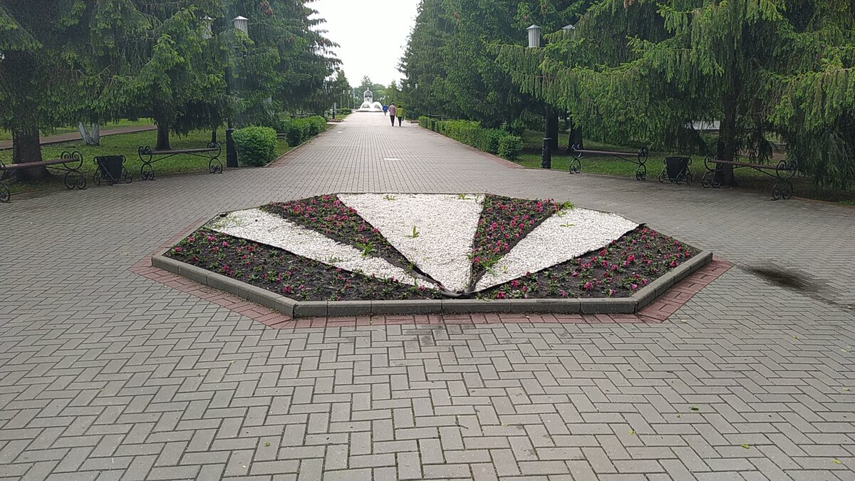 Всем привет! Сегодня мы продолжаем гулять по Уварово, небольшого города Тамбовской области с населением около 21000 человек. Напомню, что в предыдущей статье, мы показали вам памятник Великой Отечественной войне, за ним была аллея, в этой статье, мы по ней пройдемся. По бокам аллеи были установлены памятники героям Великой Отечественной войны. Мы узнали, что правильно это место называется мемориальный комплекс "Победа" в городе Уварово. Также одна из женщин рассказала, что вся молодежь уезжает в более крупные города. Город держится за счет крупного Химического завода. Пройдя по аллее дальше, мы увидели небольшой фонтан. Плитка возле него ужасно просела, видно, что укладывали, не трамбуя грунт. Из-за этого возле фонтана были большие лужи. Здесь мы увидели вот такую доску с фотографиями. В интернете мы узнали, что на доске 900 фотографий участников войны. Панораму «Во имя мира» открыли 9 мая, в день 75-летия Великой Победы. Напротив был установлен еще один памятник "Героям комсомольцам"