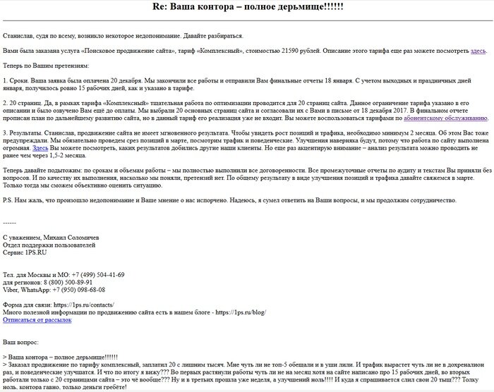- Показать, что наш отдел поддержки терпелив и вежлив со всеми, даже с негативно настроенными клиентами (и это действительно так).