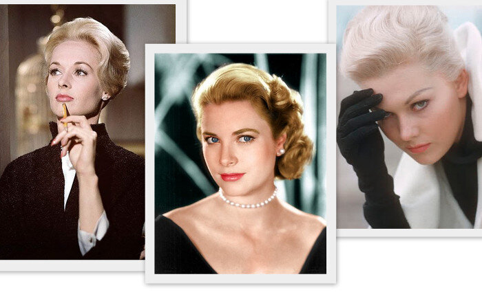 То, что "джентльмены предпочитают блондинок", в случае Альфреда Хичкока чистая правда. Есть даже те, кто говорит, что светловолосые красавицы были настоящим фетишем мэтра. Правда или нет, но результатом стал легендарный женский типаж «хичкоковской блондинки» — Icy Blonde, идеальной «ледяной» женщины. «Ледяная блондинка» — сочетание внешних качеств и внутренних. У этой женщины изысканный и элегантный вид, чаще всего классическая внешность (Хичкок отказывался снимать других блондинок тех времен, как Мерилин Монро, сексуальных и чувственных). Своим идеалом и главной музой режиссер считал Грейс Келли. На первый (и даже на второй) взгляд, блондинка Хичкока — утонченная правильная женщина, что полностью подтверждает её имидж. От идеальной укладки и сдержанного макияжа до перчаток и дорогой обуви. Своих героинь Хичкок просил одевать в классический стиль, изысканно, без подчеркнутой чувственности. Поэтому это преимущественно очень закрытые наряды. И даже если в кадре появляются открытые плечи