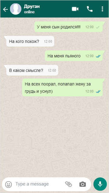 Приветствую. Хочу поделиться с вами новой подборкой смешных переписок из WhatsApp Вообще WhatsApp очень часто бывают смешные переписки. Особенно между близкими людьми.. А сыночек то весь в отца пошел) Пожалуй это лучший способ познакомиться из тех что я встречал Завидует белой завистью) И действительно, как еще их назвать) Солдат должен четко излагать свои мысли