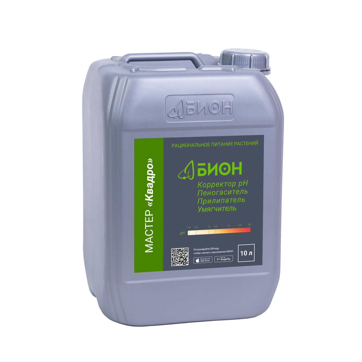 Бион Мастер "Квадро" - специализированный препарат, улучшающий качество воды для опрыскивания и повышающий результативность химических обработок и листовых подкормок растений. Он обладает четырьмя свойствами, необходимыми для подготовки воды при приготовлении рабочего раствора: