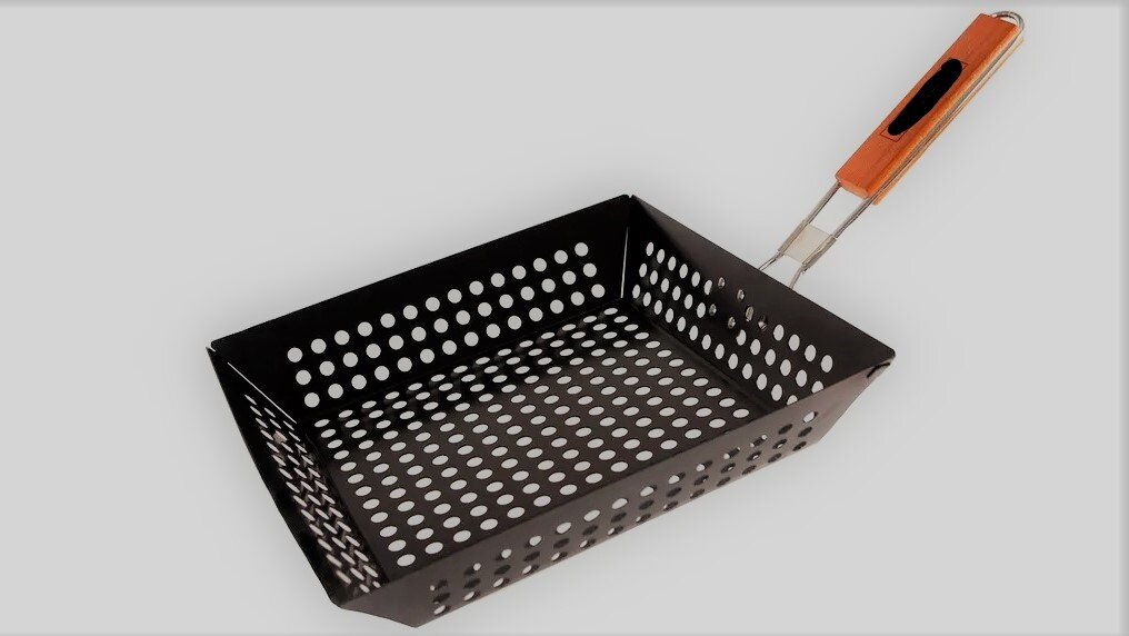 В прекрасный субботний день мы с семьей решили поехать на дачу и поуплетать жареного на мангале мяса. По дороге мы естественно забрели в гипермаркет и чуть не оставили там последние трусы, но волею судеб нам удалось выбраться в одежде... Жена обычно редко ест свинину, поэтому в очередной раз затребовала куриных крыльев. Крылья я обычно жарю на решетке, но я помню, что на даче они все проржавели и к ним будет прилипать мясо. Короче, пошли мы выбирать новую решетку и тут я увидел это чудо! Без раздумий взял и купил. Сначала опишу плюсы, минусы, а затем расскажу, сколько она стоит и стоит ли того. Речь пойдет не о конкретной сковороде какого-то производителя, а о таком приспособлении в целом. Но если это важно, то у меня та модель, виджет которой стоит внизу (Forester). На радостях я забыл сделать тонну фотографий, поэтому будем довольствоваться несколькими снимками. Я уже в квартире, а сковорода на даче... Плюсы. Конечно огромный плюс в том, что это в первую очередь сковорода с дырками