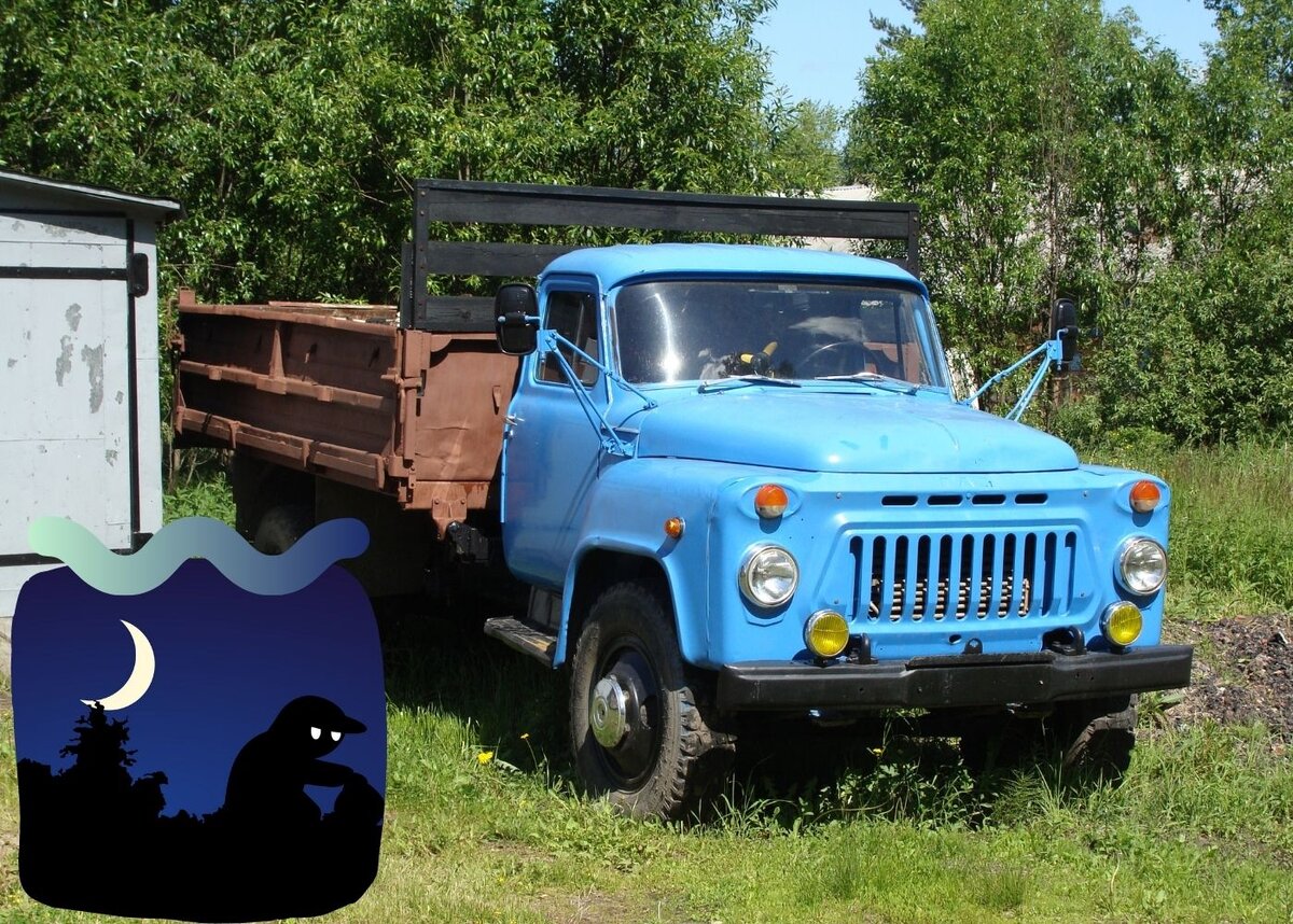 История случилась в начале 90х, когда еще существовал Советский Союз, бензин доставался бесплатно и можно было «выписать в конторе» грузовой автомобиль, чтобы отвезти на дачу все свои вещи и соседские. 1. Исполненное желание Первомайские праздники. Начало дачного сезона. Моя мама «выписала» ГАЗ52, но с 53-м кузовом, который длиннее и вместительнее. Мне 19 лет, категория открыта, потому заслужил почетную должность водителя. Кузов от 53-го Газона быстро наполнили банками, стройматериалами, мебелью, посудой и другим хламом, без которого дачнику летом просто не прожить. Мама с бабушкой и другими родственниками выехали двумя часами раньше на легковых. Мы едем с отцом и моим другом Мишкой. Я, соответственно, за рулем, батя рядом с кубышкой, Мишка в кузове под тентом. Перевозить людей без спецоборудования в грузовых машинах запрещено, но очень надо. Пришлось маскировать товарища от гайцов. Тронулись в путь. Дорога проходила через Богородский район, Нижегородской области. Местность холмистая,