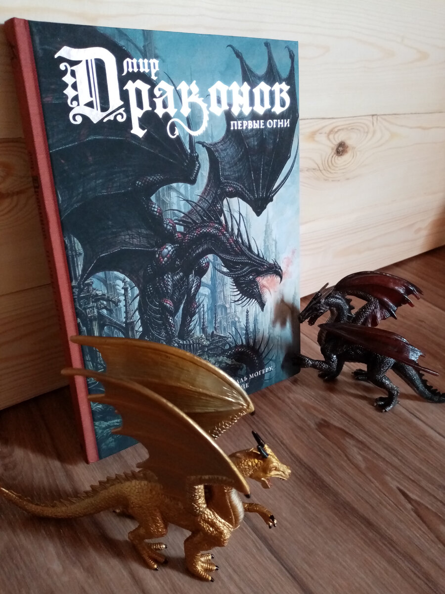 В этот раз познакомлю вас с артбуком из серии «Скандинавские боги» издательства АСТ. Это очень красочная серия, которая отличается обилием иллюстраций и подходит не только для чтения. Книги могут служить визуальными справочниками для писателей, художников, а также прекрасным источником вдохновения. Не говоря уже о том, что это идеальный подарок для читателя любого возраста. В данном обзоре полистаем книгу «Мир драконов. Первые огни». Во мне проснулся интерес к драконам (как эволюция огромного детского интереса к динозаврам): приобрела себе несколько скромных фигурок, читаю подростковое (!) фэнтези данной тематики... А почему бы нет? У меня есть и некоторые другие книги из серии «Скандинавские боги», оставлю их на потом. Обложка Некоторые пишут, что обложка - софт-тач, однако в моем случае это обыкновенная твёрдая обложка, даже без блинтов. Но она эффектная, все равно. Мощный дракон, готический шрифт - хорошо! Описание Внутри 104 страницы, множество артов и немного текста по мотивам из