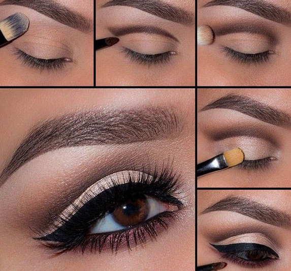 Черные, карие глаза выразительны и без макияжа, с чем девушкам, безусловно, повезло! Но для эффектного появления на работе и в театре, в гостях и на вечеринке, легкие способы сделать в несколько движений превосходный мейк-ап обязательно пригодятся. Сохраните их в свою копилку! Самое главное: помнить, что к цвету карих и черных глаз подходят как темные глубокие оттенки (темно-зеленый, темно-серый, фиолетовый, синий, коричневый), так и светлые (жемчужный, серебристый, золотистый, светло-серый). Варьируя цветовую гамму на веках, можно придать глазам выражение радости и лучезарности, важна также форма и ширина линии подводки, а также то, используются перламутровые тени или матовые. Ошеломляющий дневной макияж со стрелками и подводкой Нежный золотисто-розовый мейк-ап с подводкой Красивый вечерний макияж со стрелками без подводки Глубокий взгляд с помощью теней без подводки Праздничный мерцающий макияж с подводкой Строгий вечерний макияж со стрелками и матовыми тенями
