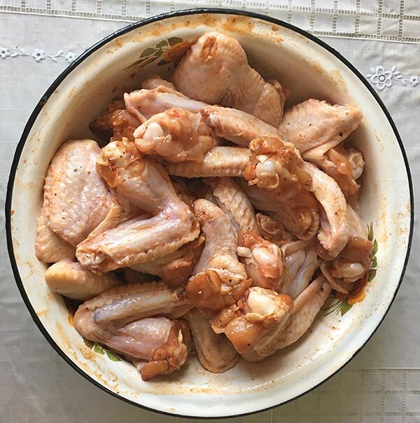 Куриные крылышки с картошкой, запеченные в духовке. Ингредиенты: Куриные крылышки Для маринада: Рецепт маринада на 1 кг крыльев.
