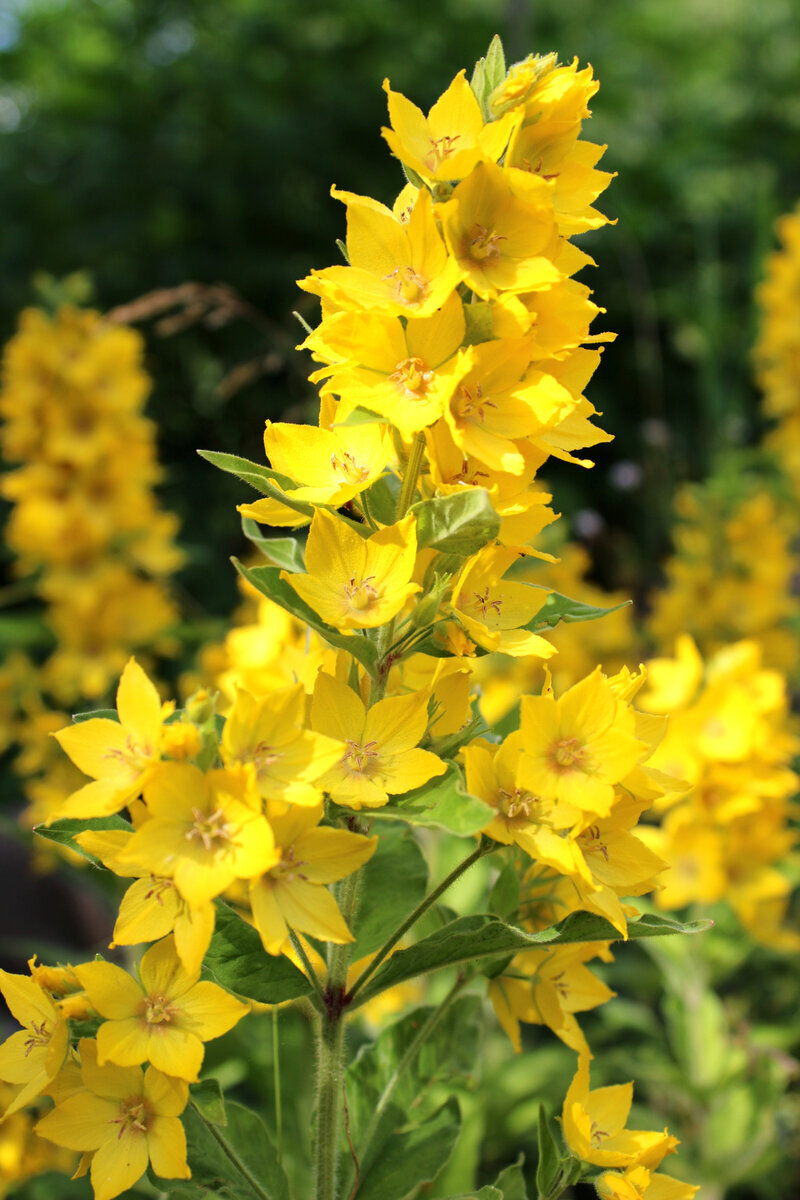 Вербейник точечный - многолетнее травянистое растение, высотой до 70 см.Зацветает вербейник примерно с конца июня и цветение продолжается около 1,5 месяцев. Небольшие ярко-жёлтые цветочки диаметром до 2 см собраны в соцветие длиною до 40 см. Растение не прихотливо к почве, но, конечно, плодородная земля ему понравится больше. Любит своевременный полив. Место посадки солнечное или полутень. Укрытие на зиму в средней полосе России не требуется. Без пересадки на одном месте может расти до 10 лет. Растение не подвержено болезням, из вредителей могут атаковать долгоносики, но это не частое явление. При всей красоте и неприхотливости этого цветка, стоит отметить, что растение очень быстро разрастается от корневой системы и обильного самосева. Семена растения вызревают примерно через 2 месяца после начала цветения. Он активно отвоёвывает себе территорию заглушая другие цветочные виды. Солидаго канадский или Золотарник канадский или Золотая розга - многолетнее, нетребовательное к почве, травян