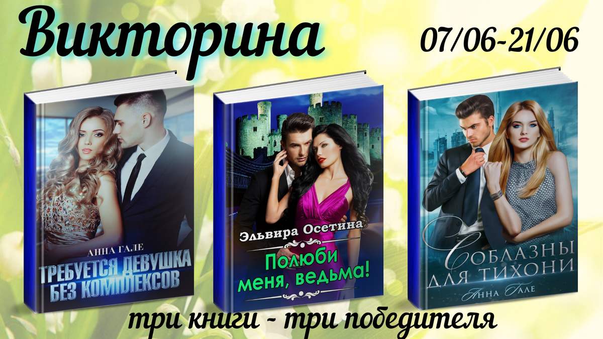 Всем добрый вечер! Второй тур нашей викторины стартует! Вам будут предложены вопросы по трем книгам. Ваша задача найти ответ на определенный вопрос в течение определенного времени (по бесплатной части книги) - завершение приема ответов будет указано в каждом вопросе. За каждый верный ответ участникам будет начислено 10 баллов. Для участия в финальном розыгрыше промо по книгам, участвующим в викторине, участнику необходимо набрать не менее 50 БАЛЛОВ! Все участники должны четко соблюсти определенные правила, которые будут прописаны в каждом посте с вопросом: обратить внимание, кому именно нужно отправить ответ ( ответы, присланные не тому автору, учитываться НЕ БУДУТ!), проверить подписку на указанную в посте авторскую группу, сделать необходимый репост: во-первых, сделать репост этой записи на свою страницу, и не опускать ее ниже ПЕРВОЙ ПОЗИЦИИ до конца розыгрыша; далее нужно делать ОБЯЗАТЕЛЬНЫЕ РЕПОСТЫ ВСЕХ ВОПРОСОВ - не ниже ДЕСЯТОЙ ПОЗИЦИИ В ОБЩЕМ КОЛИЧЕСТВЕ.