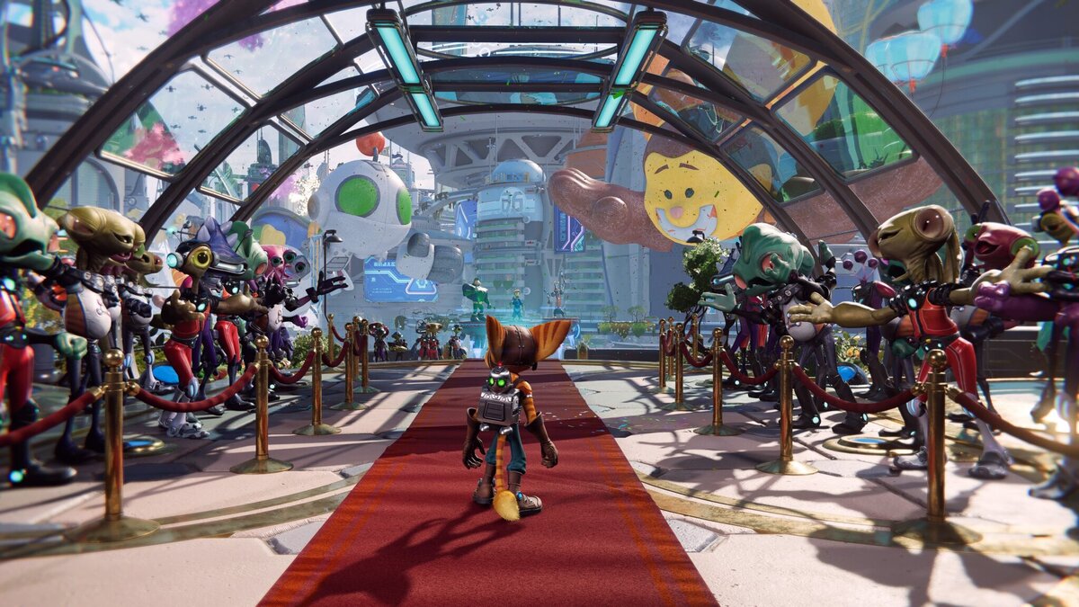 Серии Ratchet & Clank уже почти 20 лет, и за эти годы формула игры практически не изменилась: уникальное оружие, причудливые противники и спасение галактики. Что изменилось в новом PlayStation 5-эксклюзиве 2021 года? Графика! Но, на удивление, этого оказалось достаточно для того, чтобы получилась отличная игра как для детей, так и взрослых. Почему упомянуто деление на возраст? Поиграв в несколько последних частей серии, за всем этим цветастым калейдоскопом я никогда не видел какой-то глубины. В Rift Apart разработчикам удалось проработать характеры главных героев, сюжет рождает конфликты, а поднимаемые темы в полной мере могут прочувствовать и взрослый игрок. Да и новые персонажи, такие как Ривет, проработаны и вписаны настолько хорошо, что с лёгкостью встают в ряд со старичками. Но всё это не избавляет сюжет от клишированности. У нас снова безумный злодей Доктор Нефариус, который крадёт «портальную пушку», необходимую Ретчету для поиска своих сородичей-ломбаксов, и устраивает всемирны