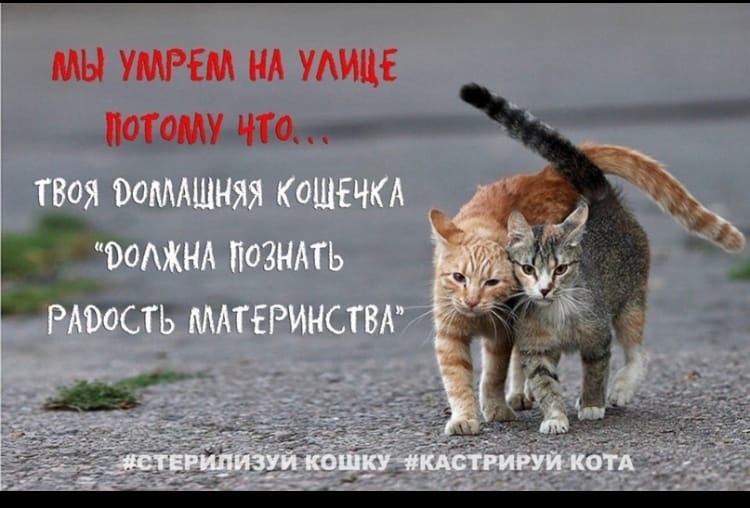 "Себя стерилизуй!" ...эту фразу мы, зооволонтеры, слышим и читаем практически ежедневно. Люди, далекие от волонтерства, крайне возмущаются тем, что мы "идем вопреки природе". Что сказать? ...если бы дети, рожденные мною, лежали на обочинах дорог тощими, голодными скелетами в ожидании подаяния от проезжающих мимо машин.... ...если бы они слепли и гнили заживо, никому не нужными в подвалах тех, кто холен и сыт, получая пинки и гонимые ими... ...если бы мои отпрыски бродили словно невидимые людьми тени по улицам города в поисках тухлых костей... ...если бы их новорожденные трупики находили в мусорных баках и помойках людей... ...если бы их несчастные тела, рожденные мною, кто-то использовал для экспериментов и своих садистских наклонностей... ...если бы глаза рожденных мною детей смотрели на меня в отчаянии, в ожидании тепла и еды... То я бы "себя стерилизовал" - и точка. К тем же, кто возмущается нашим "вопреки природе", у меня тоже есть вопросы: - Вопреки п
