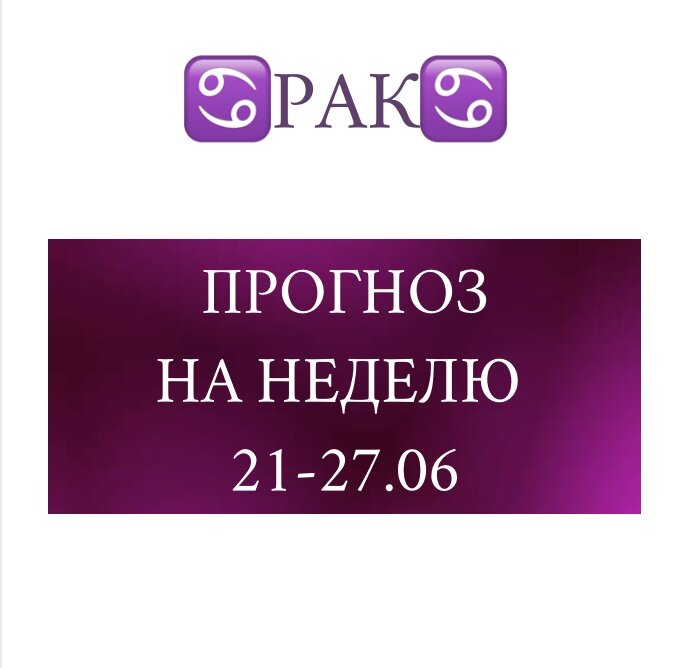 Рак. На неделе вы сможете справиться с любыми трудностями и подчинить любые обстоятельства своей воле. Сфера любви ознаменована быть праздничной. Многие вступят в брак, кто-то получит предложение о браке. Настроение радостное, сможете договориться с партнером и любым другим человеком. Если строите отношения на расстоянии, возможен приезд любимого или вас к нему. Сфера работы не будет сильно беспокоить, поскольку многие уйдут в отпуск или позволят себе больше отдыха, чем обычно. Рекомендация на неделю: постараться отдохнуть и восстановить силы. Значительные улучшения наметятся в сфере финансов. Здесь вы сможете решить давно наболевший вопрос: кто-то погасит кредит, кто-то найдёт новые источники дохода, кто-то наметит перспективный план на будущее. В целом, будет ощущение, что вы справились, но кто-то вас не услышал, возможно, это как-то связано с работой. С какими-то вопросами придётся повременить. В целом, неделя удачна. Удачной недели.