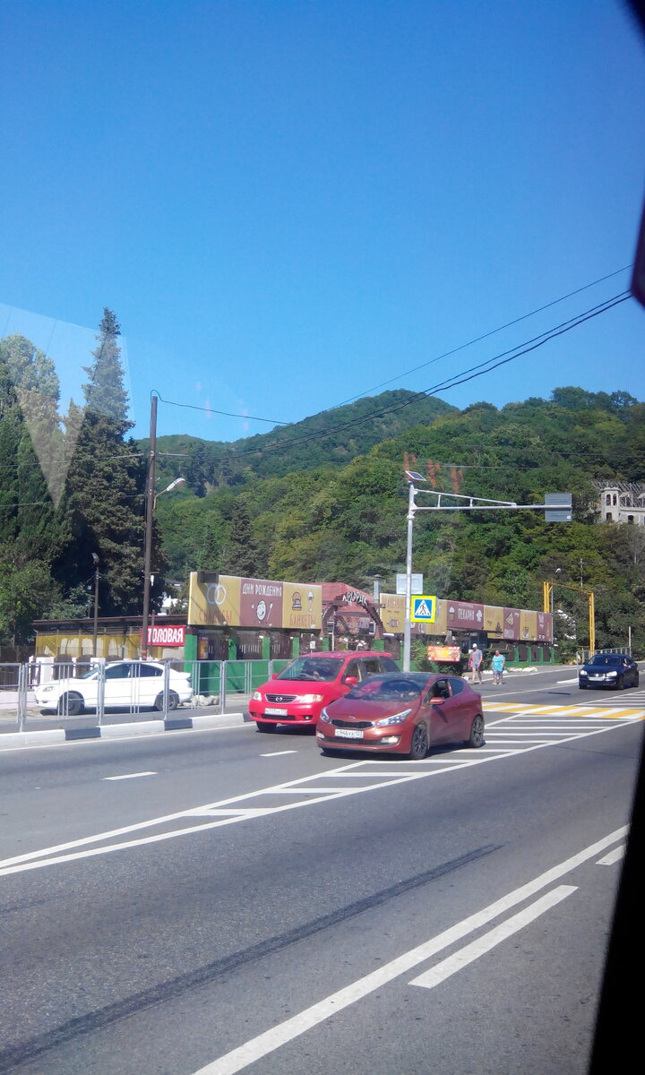 Прогуливаясь по посёлку Лазаревское, очень часто можно встретить стойки с разными экскурсиями, представленные в виде красочных фотографий. Встречаются такие стойки и при выходе на пляж. Вот и на "нашем" спуске на "наш" пляж стояла такая стойка. Иногда отдыхающие что-то там выбирали, но мы почему-то проходили мимо.