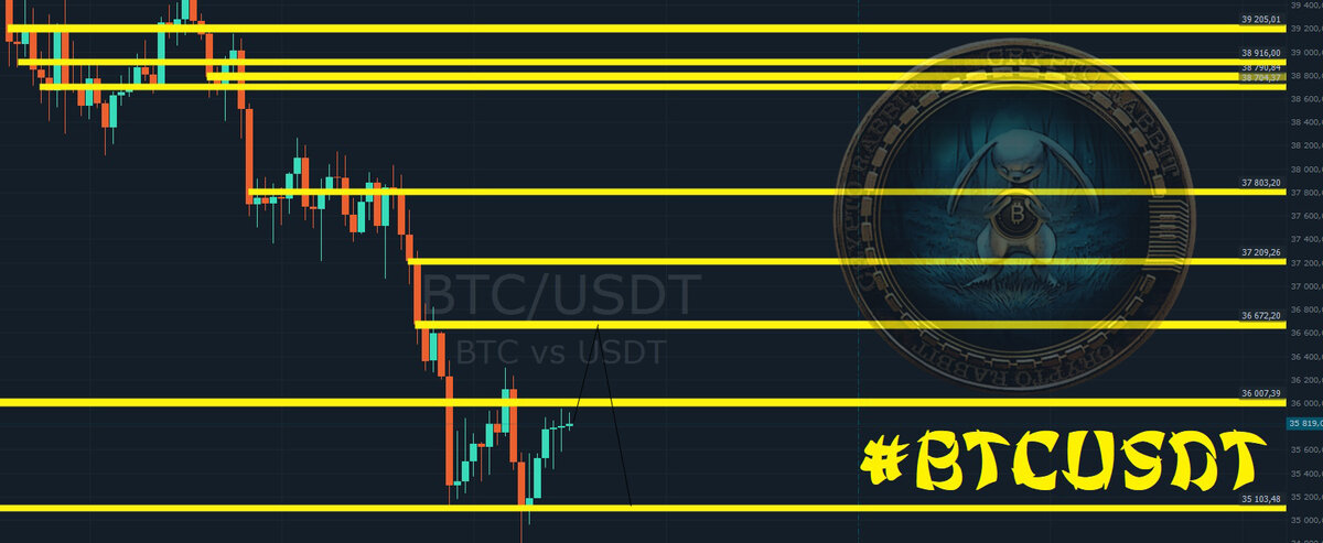 #BTCUSDT Тип сделки: Sell Limit Цена: 36600 Стоп Лосс: 37900 Тейк Профит: 35150 Комментарий: Добрый день ув трейдеры✌️ BTC по прежнему не вышел из канала консолидации и получил очень сильно сопротивление на отметке 40000 Сейчас цена направляется к нижним границам 30-34к и попробуем на этом немного заработать! Очень сильную поддержку на падение даёт уровень 36670 так что попробуй продать чуть ниже этого уровня, стоп лосс ставлю максимально за все сильные ближайшие отметки.