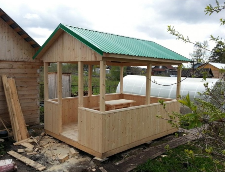 Для строительства беседки может быть выбрана технология "полуоткрытого типа", когда все элементы конструкции выступают за край обвязки, что повышает ее устойчивость и дает возможность монтажа/демонтажа без увеличения стоимости работ по монтажу. Данная технология подразумевает одинаковый процесс и для монтажа, и для демонтажа всех элементов конструкции (кроме пола). Конструкция беседки не имеющая подмостков (трапа), должна предполагать устройство небольшого подиума, который опирается на столбик верхней обвязочки. При установке в каркасной технологии пола или при его отсутствии подмость убирают. В случаях, когда конструкцию собирается из элементов, которые имеют толщину 10-15 см и высоту до 3 м, необходимо, чтобы площадка под ними была накрыта пленкой, которая создает воздушную прослойку. Фундамент для беседки Конструктивные особенности беседки предусматривают возможность расчета угла установки по отношению к вертикальным плоскостям. Но в силу указанных факторов, геометрия основания и