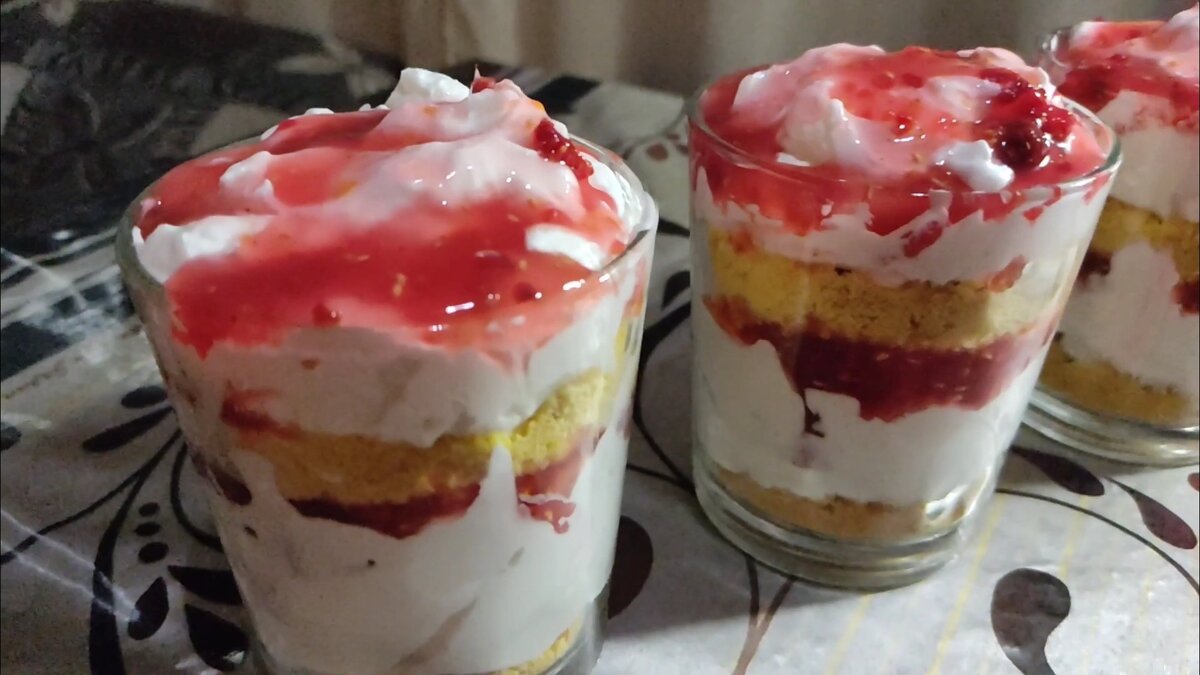 сезон ягод хочется приготовить что-то необычное, но в то же время простое в приготовлении. Порционный десерт разлитый по стаканчикам — это находка. Так можно приготовить абсолютно любой привычный нам тортик и он будет новым и необычным блюдом на вашем столе. Нужно только пересчитать продукты под ваш объём и количество стаканов. Мои стаканы объемом 330мл, 3шт. Но честно говоря, за кадром осталось немного всех продуктов и я собрала ещё одну маленькую пиалочку вкуснятины. Сегодня готовим чизкейк с малиновой прослойкой. Можно взять свежую малину и положить между слоями, но это уже совсем другой рецепт.