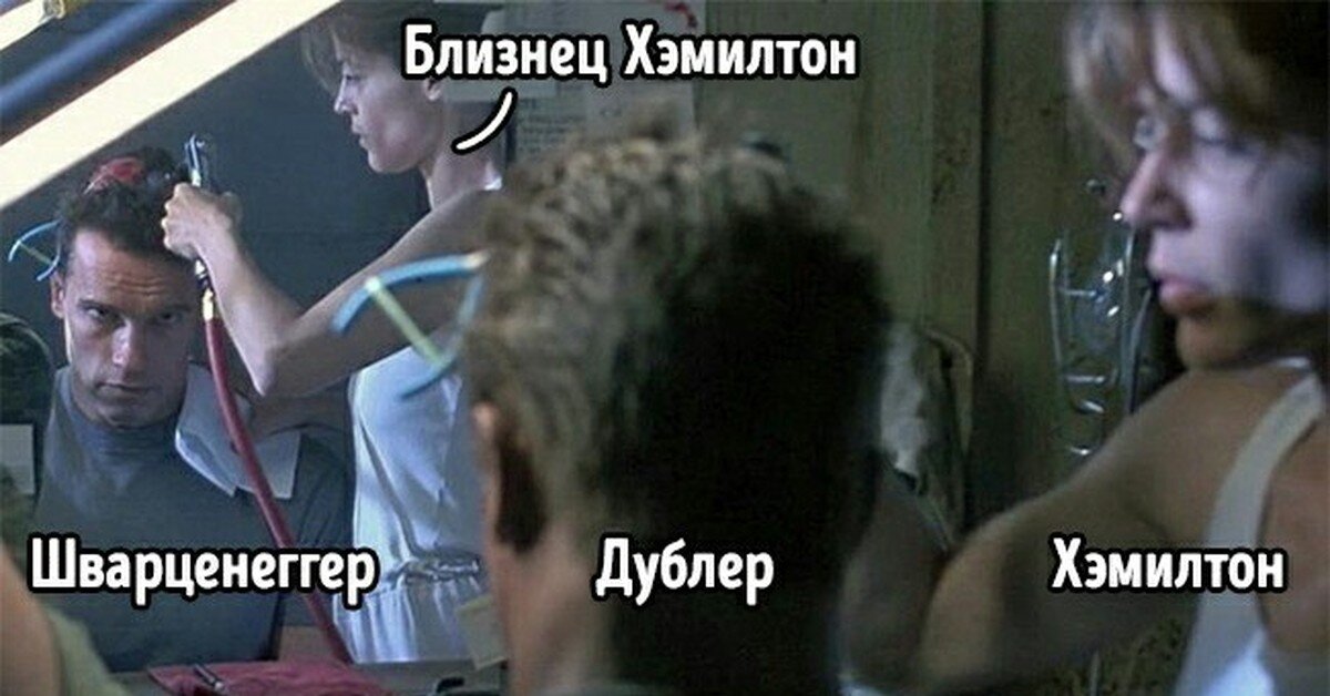 Снимать зеркало и избежать отражение камеры трудно. Однако придумали способы, которые помогают при съемке. Например, актер смотрит не на свое отражение, а на отражение камеры. Таким образом, создается иллюзия, что он смотрит на себя. Интересный момент был на съемках 2 части Терминатора, когда главных героев играли дублеры. Делать мистическое и страшное небо через CGI очень затруднительно, поэтому в кинематографии применяют способ, при котором в аквариум выливают краски и снимают полученный результат. Часто в боевиках персонаж бежит, а потом прыгает в окно и разбивает его. Настоящие оно или нет? На самом деле, окно конечно ненастоящие - его заменяет прозрачная пластина из очищенного сахара. В фильмах либо сериалах затруднительно снимать настоящий снег, так как будет нужна дополнительная аппаратура, да и еще актеры могут заболеть. Поэтому часто на съемках используется искусственный снег. В Голливуде есть даже компания по поставке искусственного снега - Snow Business. Когда в фильме не