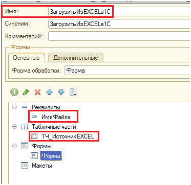 Универсальный метод с программным созданием колонок и их наименований в 1С в соответствии с колонками из Excel-файла. Создадим внешнюю обработку в 1С 8.3. (обычные формы). ИмяФайла - имя поля, в которое загружается наименование файла EXCEL-источника. На кнопке “Выполнить» напишем Процедуру для импорта из Excel. __________________________________________________________________________________________ Процедура КнопкаВыполнитьНажатие(Кнопка) // Процедура для импорта/загрузки в 1 8.3 (обычные формы) данныз из Excel-файла. // Универсальный метод с программным созданием колонок и их наименований в 1С в соответствии с колонками из Excel-файла. // ИмяФайла - имя поля,в которое загружается наименование файла EXCEL-источника. Если Не ЗначениеЗаполнено(ИмяФайла) тогда Сообщение = Новый СообщениеПользователю; Сообщение.Текст = "Файл для загрузки не выбран!Выберите файл."; Сообщение.Сообщить(); ПодключитьРасширениеРаботыСФайлами(); Режим = РежимДиалогаВыбораФайла.Открытие; ДиалогОткрытияФайла = Н