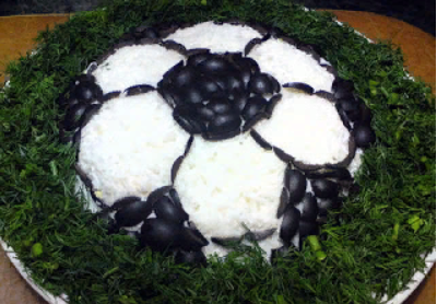 Салат в виде футбольного мяча,это вариант оригинального салата. Этим салатом можно порадовать своего мужчину как большого,так и маленького, который любит футбол, Особенно сейчас в жаркие дни футбольных баталий Евро 2020 по футболу , это блюдо очень актуально будет смотреться на любом столе. И если любимая команда одержала победу в игре, то «футбольный» салат это именно то, что поможет отпраздновать победу! Такой салат доставит массу положительных эмоций любому футбольному фанату и не только ему,все домочадцы и гости будут в восторге . Для приготовления салата понадобятся совсем простые продукты. Ингредиенты: