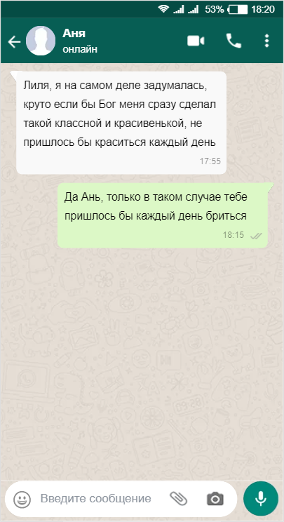 И снова здравствуй дорогой читатель, решил не томить тебя в ожидании новой подборки и сделал как можно быстрее новую, так что я заряжаю тебя позитивом и отличными эмоциями весь день. Думаю кстати вообще увеличить количество подборок за день. Поехали... Начнём я думаю с примера девушки, которая хотела упростить себе жизнь, чтобы не тратить каждый день время на косметику, и о том, как её сразу же поставила на место её подруга. Читаем… Идеальный ответ))) На самом деле полностью согласен, что мужчинам в этом плане больше повезло, потому что даже небритые мы можем выглядеть довольно неплохо, но в любом случае бриться мы должны. Так что везде есть как свои минусы так и плюсы. Следующая переписка про мужчину, который опоздал на работу и ему по поводу этого написал администратор, чтобы уточнить почему он опоздал, причина у него, довольно таки интересная и даже логичная с какой то стороны)) Читаем... Действительно, как бы он раньше вышел если уже поздно?))) А у вас бывали такие случаи, что вы в