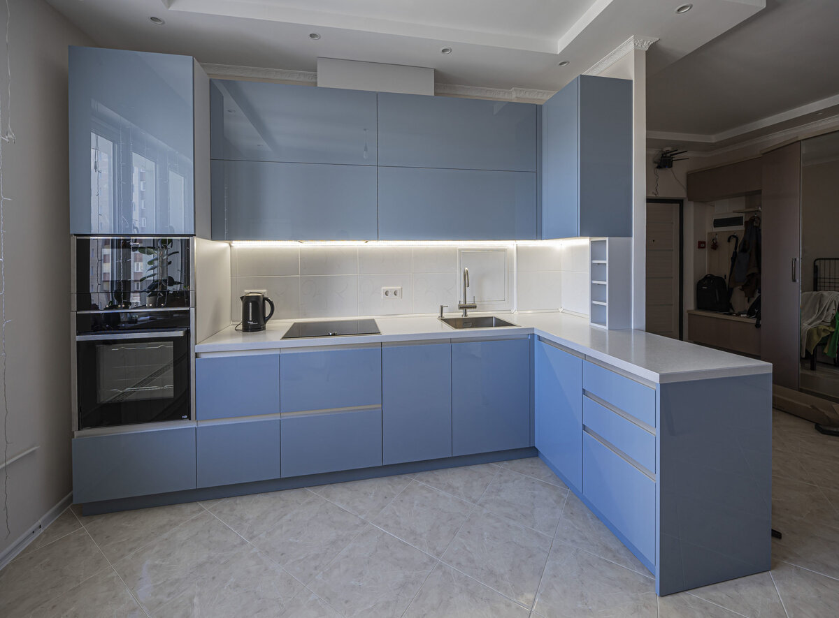 - глянцевые фасады придают воздушности и легкости;