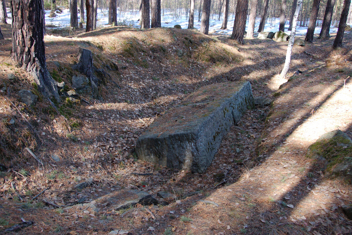Возможно, здесь вырезали камень, с одной из стенок гранитного массива, в виде части цилиндра.