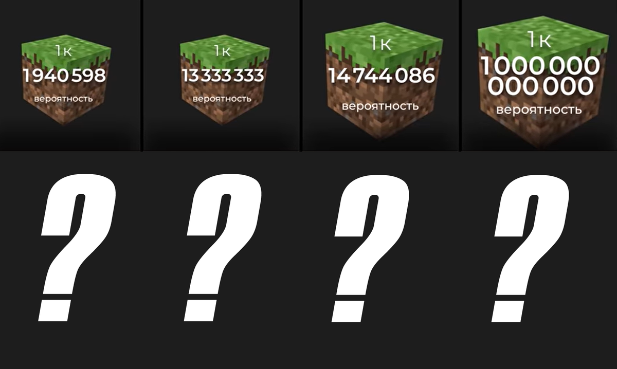 Всем привет, в этой статье речь пойдет о самых РЕДКИХ событие в minecraft. Я буду приводит вероятности и события , которые происходят с этой вероятностью. Также шансы выпадения различных предметов и тому подобное. От самых ЧАСТЫХ к самым РЕДКИМ Без лишней воды приступаем к делу. ПАНЦИРЬ ШАЛКЕРА ВЕРОЯТНОСТЬ 1 к 2 Выпадение при смерти в размере 1 штуке. ОСЛИК ВЕРОЯТНОСТЬ 1 к 5 Шанс появления маленького ослика СТРАЖ ВЕРОЯТНОСТЬ 1 к 6 Шанс того, что страж не дропнет ничего ЦЫПЛЕНОК ВЕРОЯТНОСТЬ 1 к 8 Шанс выбить цыпленка из яйца КРОЛИЧЬЯ ЛАПКА ВЕРОЯТНОСТЬ 1 к 10 Шанс выпадения лапки из кролика. Вероятность можно повысить, зачаровав на добычу ДЕТЕНЫШИ ВЕРОЯТНОСТЬ 1 к 10 Шанс появления малыша того или иного животного в minecraft ЧЕШУЙНИЦА КРАЯ ВЕРОЯТНОСТЬ 1 к 20 Этот моб может появится при броске эндер жемчуга КРОЧНЕВАЯ ОВЦА ВЕРОЯТНОСТЬ 1 к 33 ШАНС ВСТРЕТИТЬ КОНИЧНЕВУЮ ОВЦУ. Это вторая по редкости раскраска ЧЕРЕП СКЕЛЕТА ИССУШИТЕЛЯ ВЕРОЯТНОСТЬ1 к 40 Вам наверное всегда было интересно с как