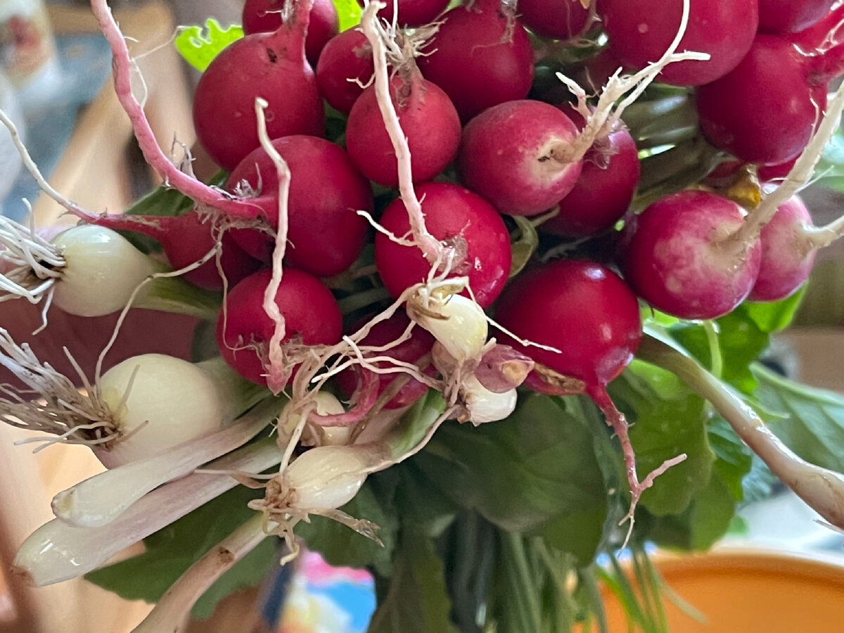 У нас в деревне не заканчивается сезон поспевания редиса и наконец-то начали созревать огурцы.. И в совокупности: жара, работы на огороде, в полях, сенокосы и прочие тяжёлые радости требуют особой еды, придающий сил и свежести. Поэтому мы у себя в деревне с удовольствием делаем окрошку из овощей, которые выросли у нас на участке, но есть и небольшие хитрости, о которых я узнала только здесь и с которыми я с радостью поделюсь. Ингредиенты для окрошки наверное знает каждый, от мала до велика, но давайте я их напомню. Срываем с грядки собственноручно посаженную редиску, перьевой лук, только что начинающие зреть огурчики, собираем перед этим только что снесённые куриные яйца😅😂😂.. Ладно, ладно.. Не у каждого есть участок, на котором можно развернуться, поэтому, в любом близлежащем магазине покупаем этот вышеперечисленный набор продуктов: редиску, огурцы, зелёный лук и укроп, картофель, яйца, варёную колбасу или мясо, которое можно отварить, а также айран или квас. Окрошка у нас от слова