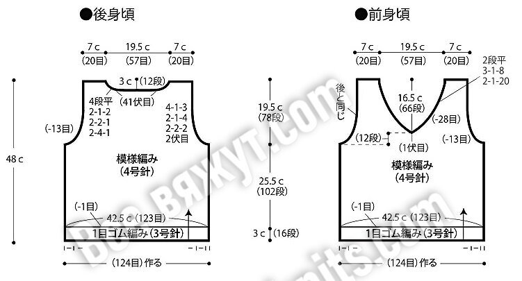 После планки указана ширина спинки и количество петель для вязания основным узором.