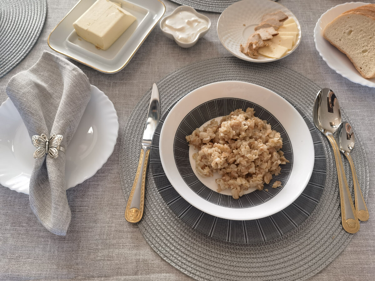 У нас был день рождения, должны приехать гости и я решила, что не стоит мне изменять моим принципам и приготовить то, что я тоже могу есть. Муж очень переживал, что все останутся голодные😁 Завтрак у нас был плотный, чтобы не кусочничать до праздничного стола: каша многозерновая, сыр, бутерброды... Кашу я не варю, а запариваю. Гости приехали как раз к обеду: аджаб сандал. Баклажаны, перец, картофель, помидоры и кусочки телятины на гриле. Такое блюдо едят все и дети, и взрослые. Медальоны из говядины с гарниром из фасоли, горошка, кукурузы и морковки. Можно добавить зелень и чеснок. Салат без названия 😁. Заправка домашний майонез – варёные яйца, горчица, сметана. В составе маринованые огурчики, жареные шампиньоны, яйца, куриная грудка, язык, чернослив – всё очень мелко порезано. Сверху тертый грецкий орех. Можно добавить еще зелёное яблоко. Салат заменитель оливье. В составе яйца, свежий огурец, крымский лук, три вида мяса(у меня курица, индейка, говядина – я заранее запекла мясо в