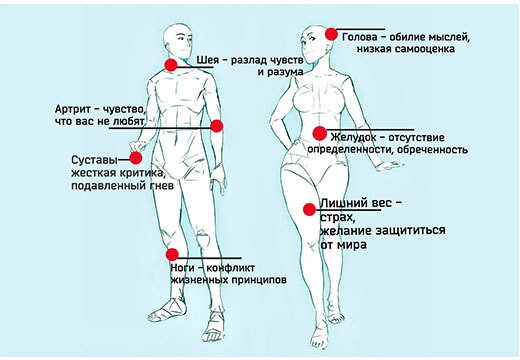Артрит — мысль, что тебя не любят. Люди, страдающие артритом, как правило, очень правильные люди. Для них всегда главенствует слово “надо”, они делают все через себя, буквально ломая через коленку. Очень силен “внутренний критик”.