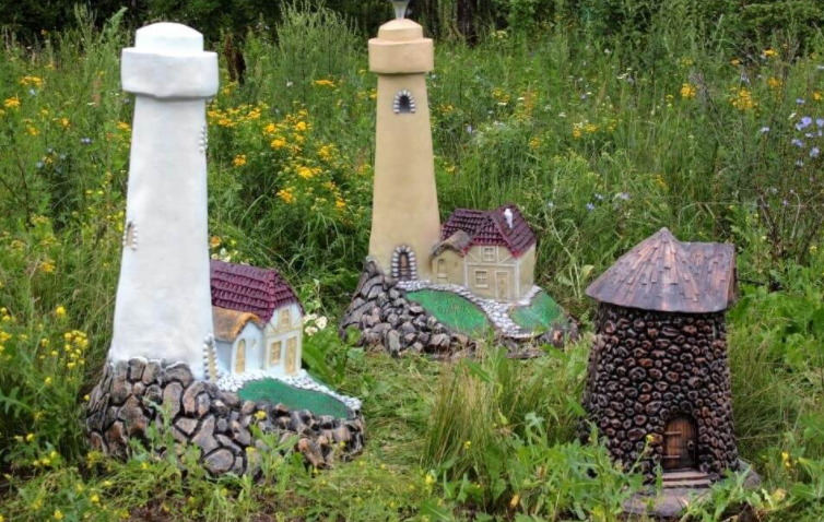 Это типовое решение для загородных участков, которое превращает неприглядные выступы из земли в виде крышек на "Топас" в оригинальные композиции.