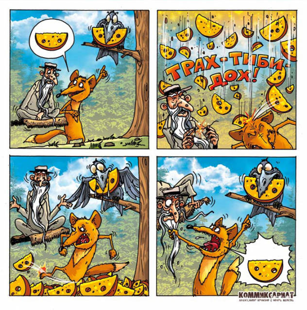 Сказки нашего детства, сюжеты которых мы знаем наизусть, могут заиграть новыми красками, когда за их перерисовку берутся талантливые художники. Красная шапочка решается на пластическую операцию, Винни-пух и Пятачок открывают ЖЭК, а хитрая лисица строит десятки планов по отъему желанного сыра у жадной вороны, которая никак не хочет делиться.