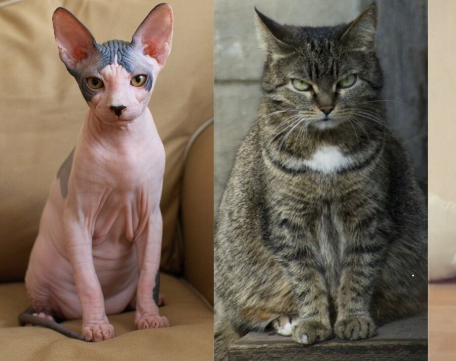 Кошка-сфинкс + дворовой котяра. Получился котенок-конструктор.