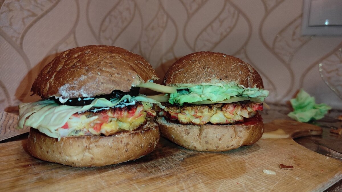 Сегодня мне посчастливилось приготовить знаменитый крабсбургер, который оказался довольно достойным своих легенд из мультфильма "Спанч Боб". Итак, вам понадобится: Граммовок нет в принципе, все делается на глаз. Когда замешаете нарезанные крабовые палочки, нарезанный лук и яйца с мукой, останется лишь обжарить получившиеся котлетки и нарезанные булочки для хрустящей корочки, после чего уже формировать бургер. Булочка->соус любой->котлетка->лист капусты->маринованные огурчики->сыр->соус на булку->булка. Можно также разогреть в микроволновке готовый крабсбургер, чтобы сыр растаял и получился просто фантастический крабсбургер из бикини боттом.