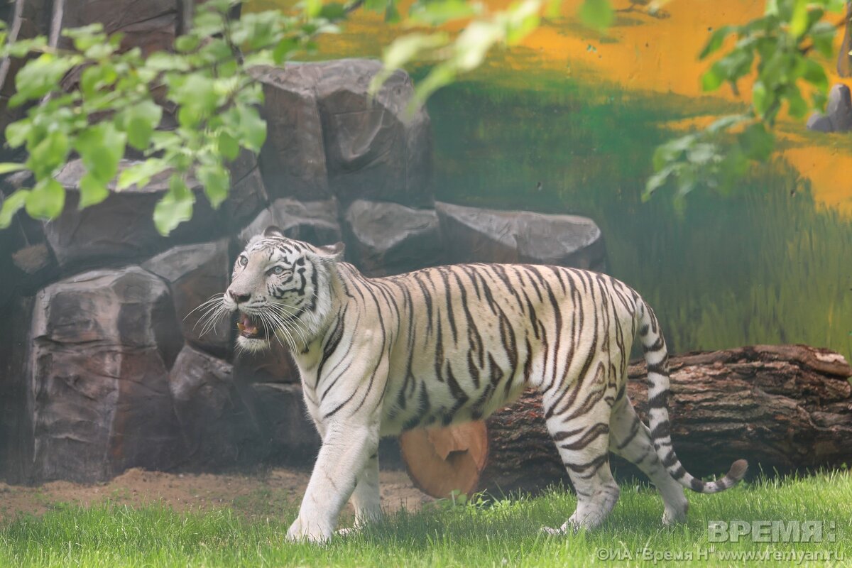 Бенгальский тигр - самый известный из всех видов тигров. Находящийся под угрозой исчезновения, он является национальным животным Бангладеш. Также считается национальным животным в соседней Индии и Китае. Белая вариация была выведена зарубежными учеными в середине 1970-х годов для украшения зоопарков. В природных условиях белая шкура только мешала бы зверю охотиться летом. Специалисты объясняют редкий окрас недостаточным содержанием пигмента. Однако черные полоски при этом не пострадали. Белые тигры отличаются от своих собратьев с рыжей шкурой еще и голубым цветом глаз. Одна такая красавица поселилась в нижегородском «Лимпопо». Посмотреть на нее удалось корреспондентам ИА «Время Н». Как выяснилось, еще в прошлом году тигрица выступала в казанском цирке. Из-за пандемии COVID-19 цирк стал распродавать животных. Белую тигрицу купил зоопарк. Специалисты из Нижнего Новгорода прибыли в Казань, аккуратно заманили зверя в клетку едой, а потом перевезли в столицу Приволжья. Обошлось даже без нар