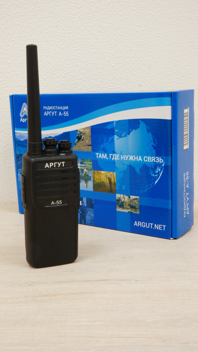 Аргут-А55 - это профессиональная LPD/PMR радиостанция, поступила радиостанция относительно недавно но уже нашла свое применение в сфере производства. Давайте рассмотрим ее подробнее Коробка выполнена из глянцевого картона, с изображением радиостанции, названием модели и слоганом компании Аргут Комплектация Аргут А-55 Исполнение Аргут А-55 Габариты: 57 мм x 127 мм x 53 мм. Вес: 260 гр Корпус радиостанции выполнен из прочного АВС-РС пластика на металлическом шасси , поэтому ему не страшны физические воздействия и обеспечить максимальную защиту. Рация имеет стандарт пыле-влагозащиту IP54 сможет защитить рацию от попадания влаги внутрь корпуса Характеристики 16 программируемых каналов Выходная мощность: 5 Вт, что позволяет ей обеспечивать связь на очень большие расстояния. Функция TOT - Таймер ограничения времени на передачи Функция VOX - Голосовое управление радиостанцией Функция BCL - Блокировка занятого канала Настройка широкой / узкой полосы частот (25/12,5 кГц) Функция экономии