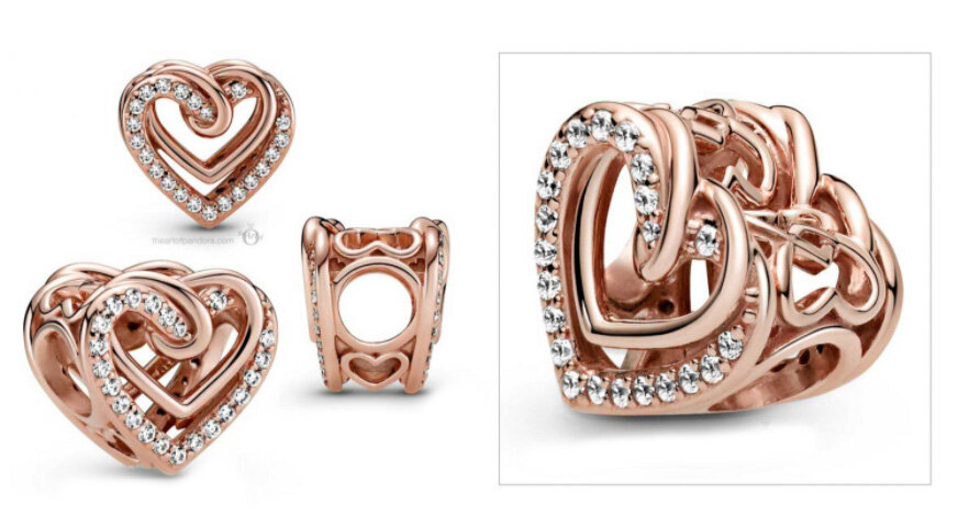 Шарм “Сияющие сплетенные сердца” из серии Pandora People в отделке Pandora Rose (789203C01)