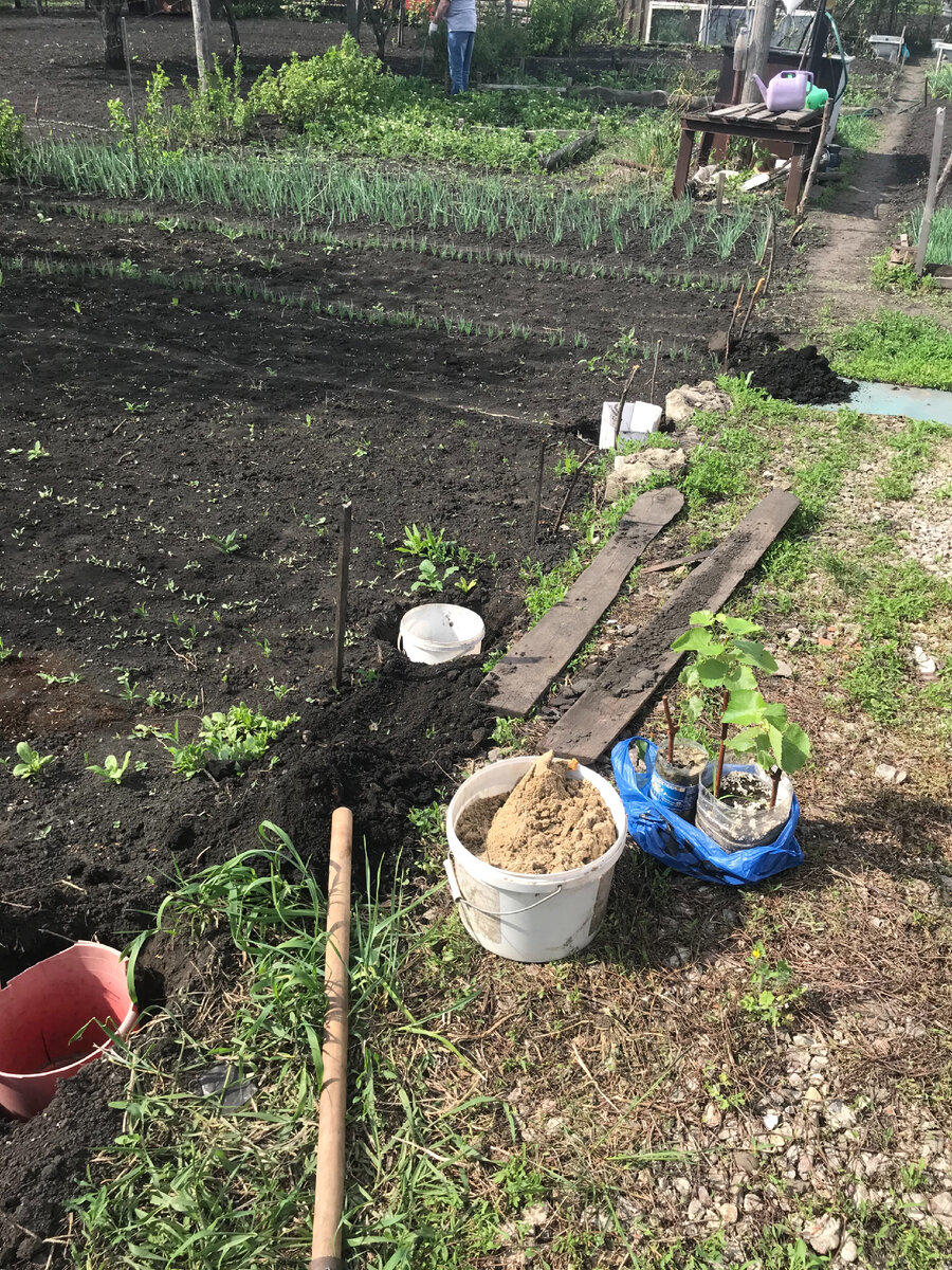 Всем привет. Расскажу о моем первом опыте посадки винограда. решил я загородить от солнца автомобиль виноградной стеной. А для этого нужно его посадить и вырастить. Вот и попросил у знакомого несколько саженцев винограда. О посадки винограда ничего не знаю. Слышал только несколько условий. Первое - это расстояние между кустами 2-3 метра, второе - проливать первое время водой для формирования глубокого корня, и третье - загородить от солнца, что бы не сгорели саженцы. Отталкиваясь от вышеописанных условий я приступил к высадке. Определившись с местом будущего куста, выкопал ямки. Вставил в эти ямки старые ведерки, предварительно удалив у них донышки. Для чего я использовал ведерки? Все очень просто и логично, как мне кажется. При проливе виноградных саженцев, вода не будет размываться по поверхности земли, а направиться вглубь. Таким образом она дотечет до нижних корешков и проституирует глубинный рост. А вот если поливать по поверхности, то корни и будут формироваться там же. А зимой