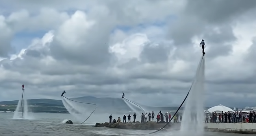Шоу флайбордистов на открытии сезона 2021 года в Геленджике.