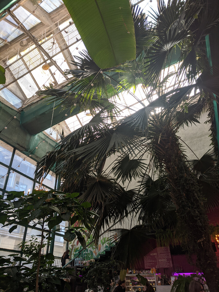 Санкт-Петербург по праву считается гастрономической столицей России. Одних только ресторанов и кафе здесь работает больше 8000! Сегодня я расскажу вам об одном прекрасном месте, которое не так просто найти, но побывав там вам захочется приходить сюда снова и снова. Хотите выпить чашечку кофе и насладиться десертом в джунглях? Не многие кофейни в наши дни могут похвастаться наличием хоть каких-нибудь живых растений, но посмотрите сюда! Под крышей этого здания расположен самый настоящий тропический лес! За растениями ежедневно ухаживают, поливают, в кофейне работают кондиционеры и увлажнители воздуха. Медовый раф? Смузи? Или может быть золотой латте с лавандой? От позиций в меню здесь голова идёт кругом. Каждый найдет что-то по душе. Кроме кофейных напитков в меню представлены несколько видов чая, молочные коктейли, соки из свежевыжатых фруктов и конечно вкуснейшие десерты и обеды. Ценник на всё это удовольствие начинается от двухсот рублей. Где же искать этот секретный сад? Вот м