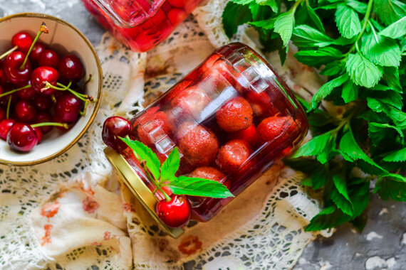 Компот из клубники и черешни на зиму - очень простой рецепт
