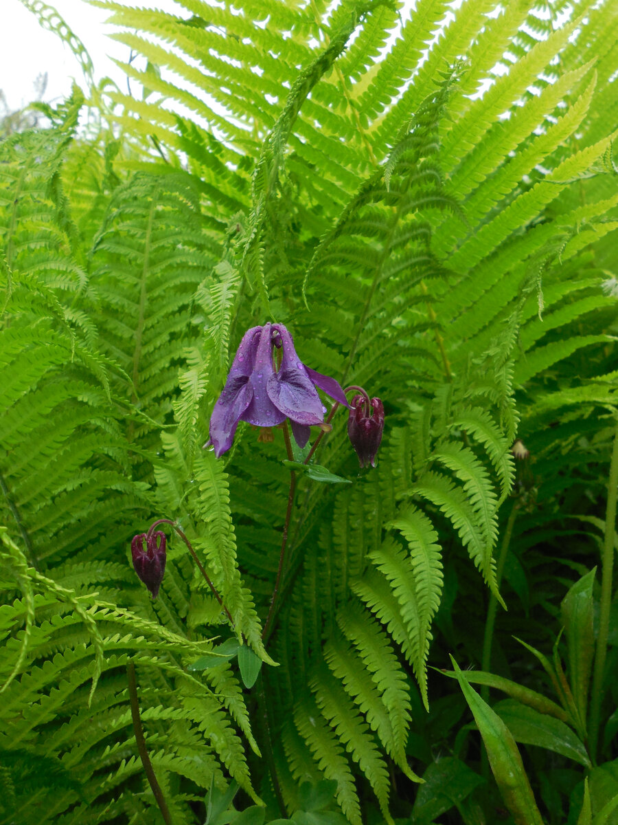 Хост в нашем саду не знаю сколько, т.к. не считала. Но не очень много (т.к. видела побольше), и не не совсем уж и мало. Т.к. разрослись старые куртины, которые можно поделить. Но делить не буду, если эти хосты здоровые. Пусть и дальше разрастаются большими "кочками"! С папоротником страусником сложнее. Его очень много, планируем удалить хотя бы половину. Надо бы больше, но сложно, т.к. разросся везде. Хотите узнать (и увидеть), чем опасен для сада страусник? См. здесь Довольно часто прямо в хостах и в папоротниках прорастают другие растения. Некоторые я безоговорочно оставляю, т.к. красоте сада это на пользу. По крайней мере, с моей точки зрения. Вот некоторые примеры такого соседства: Аквилегия. У нас самая простая. Размножается самосевом. Если всходит среди папоротников и хост, почти всегда оставляю, т.к. смотрится неплохо. Чистотел. В этом году посеялся здесь, в хосте, впервые. Но в лесной части участка растёт давно. А на следующем фото отнюдь не крапива. Это колокольчик крапиволи