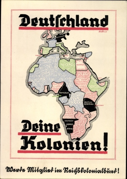 Англия имеет 29 миллионов квадратных километров колоний с 350 миллионами жителей, а Франция - 6 миллионов квадратных километров с 52 миллионами жителей. Германия, однако, во времена Бисмарка приобрела 2 ½ миллиона квадратных километров с 12 миллионами жителей в Африке и в Тихом океане: это территория, почти в пять раз превышающая площадь германского рейха; половина ее пригодна для немецких поселенцев, половина - для плантаций с цветными рабочими; кроме того, там дремлют в почве богатые природные ресурсы меди, угля и т. д. Нет сомнений, что наши колонии сулят Рейху хорошее развитие. Есть большая Германия, где однажды наши национальные излишки получат дом на земле Рейха, где мы сможем получать сырье для нашей промышленности и продавать продукты нашей торговли.