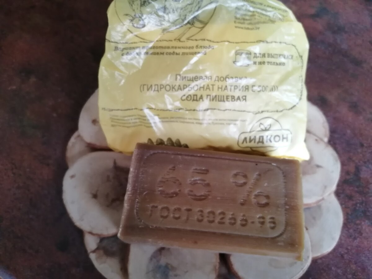 На прилавках магазинов много различных моющих и чистящих средств. В их составе можно найти множество химикатов, пагубно воздействующих на окружающую среду, а также на кожу рук и организм в целом. Я недавно нашла рецепт чистящего средства, которое можно приготовить в домашних условиях.По качеству очищения не уступает дорогостоящим средствам. И самое приятное, что состав в нём экологичный, так как оно состоит из натуральных веществ: 1. хозяйственное мыло 2. пищевая сода Хозяйственное мыло состоит из натуральных компонентов: - натуральные жиры - натрий лауриновая или пальмитиновая кислоты - щелочь - вода И чем темнее цвет хозяйственного мыла, тем оно натуральнее. Оно обладает свойствами: - антибактериальное - отбеливающее - безопасно для мытья посуды Пищевая сода - это белый порошок с мелкими кристаллическими частицами, без запаха. Ещё её называют гидрокарбонат натрия - это слабая кислая соль угольной кислоты. Пищевая сода это мягкий абразив. Смешав два этих компонента получаем универсаль
