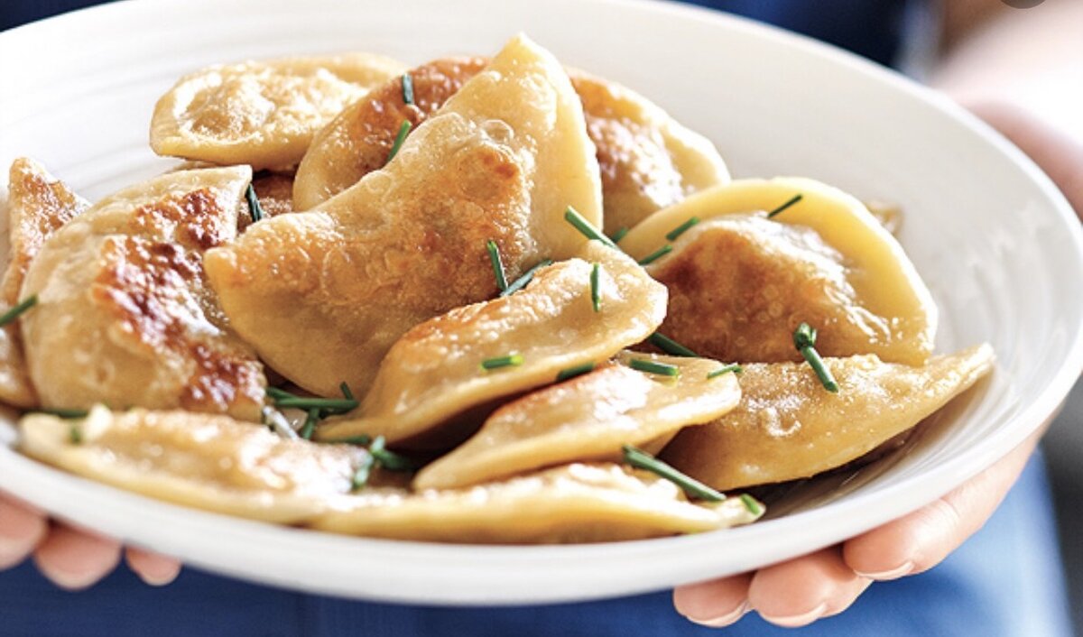 Разделите тесто на два шарика. Раскатайте по одному куску за раз на слегка посыпанной мукой поверхности, пока он не станет достаточно тонким для работы, но не слишком тонким, чтобы он разорвался. Нарежьте кружочками с помощью резака для печенья, резака для перги или стакана. Почистите немного воды по краям кругов и ложкой немного наполните в центр. Сложите круги в полукруги и нажмите, чтобы запечатать края. Положите пероги на противень и заморозьт