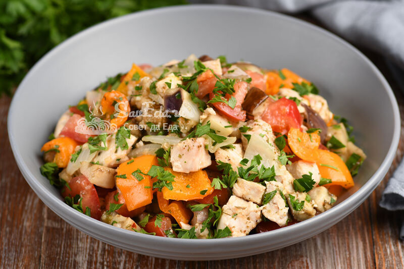 Салат из курицы и овощей в духовке (очень просто готовить и вкус отличный)