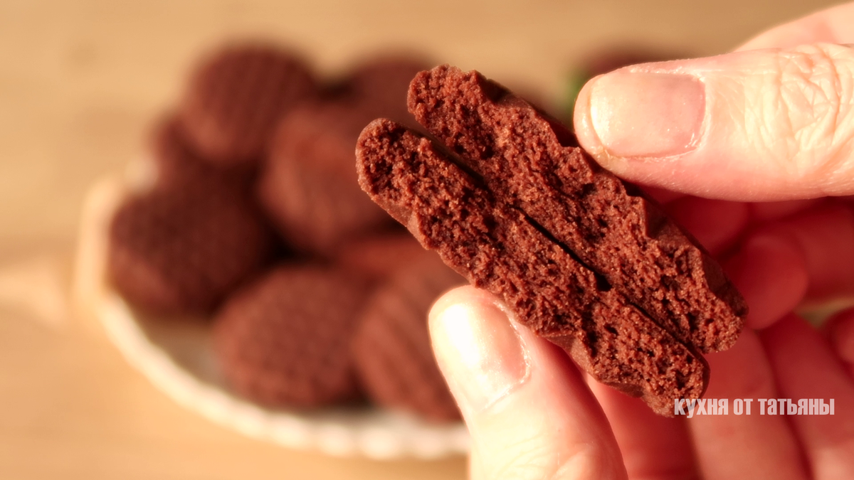 Всем привет. Сегодня, в видео, очень вкусное шоколадное печенье. Еще один способ, формирования красивого рисунка, а также простой и интересный рецепт. Это печенье готовится без яиц. Тесто в холодильник убирать не надо, так что получается все очень быстро и красиво. СПОСОБ ПРИГОТОВЛЕНИЯ: Сливочное масло комнатной температуры, добавляю в глубокую тарелку, высыпаю ванильный сахар и сахарную пудру. Все продукты перемешиваю лопаткой. Масса посветлела и стала воздушной, добавляю в нее какао. Снова все хорошо перемешиваю, до получения гладкой шоколадной массы. Масса получается очень ароматная. Добавляю просеянную муку и высыпаю сверху разрыхлитель. Муку всыпаю частями и перемешиваю лопаткой. Затем добавляю остаток муки и продолжаю вымешивать тесто руками. Тесто получается мягкое, пластичное и очень ароматное. Оно достаточно податливое, из него легко формировать печенье с рисунком. От теста я отделяю небольшие кусочки и скатываю их в шарики. Затем, прижимаю каждый шарик кухонным молоточко