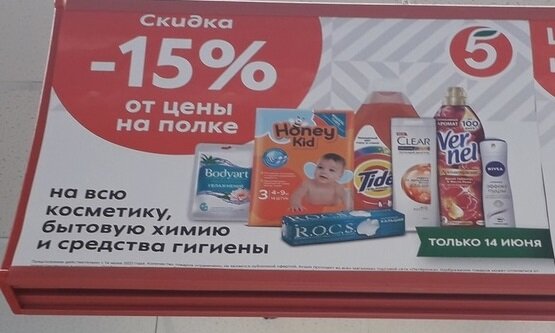 14 июня 2021 года -15% скидка на ВСЮ бытовую химию. Пятерочка.